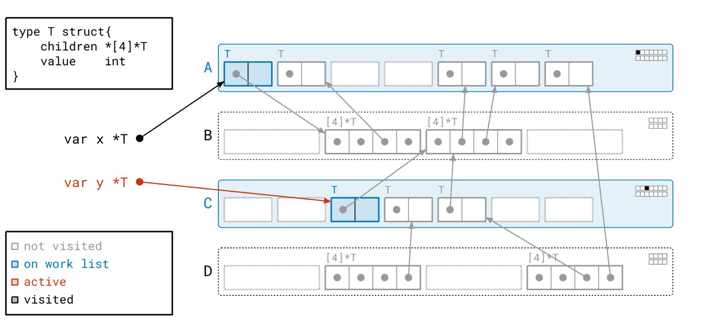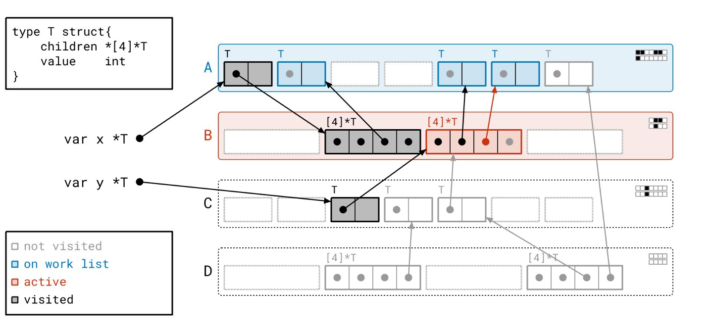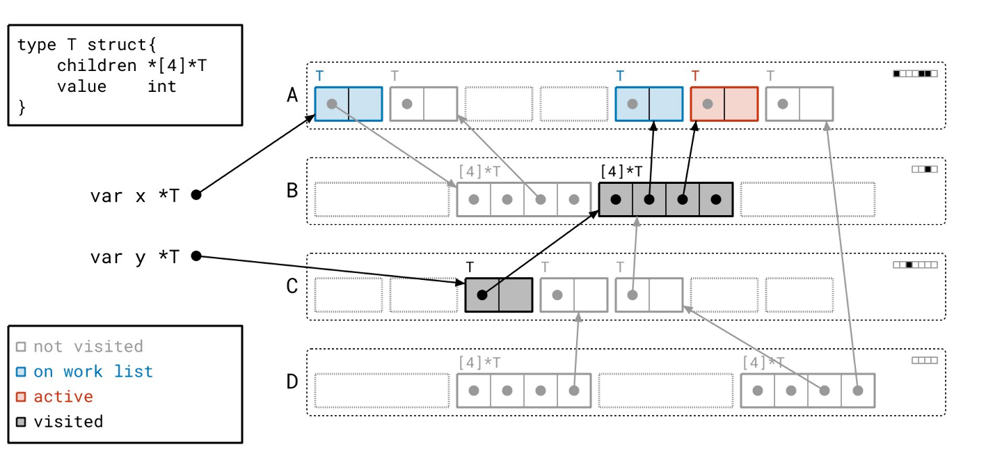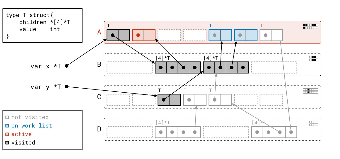 For example, this algorithm is, in practice, executed concurrently with your regular Go code. Walking a graph that’s mutating underneath you brings challenges. We also parallelize this algorithm, which is a detail that’ll come up again later.