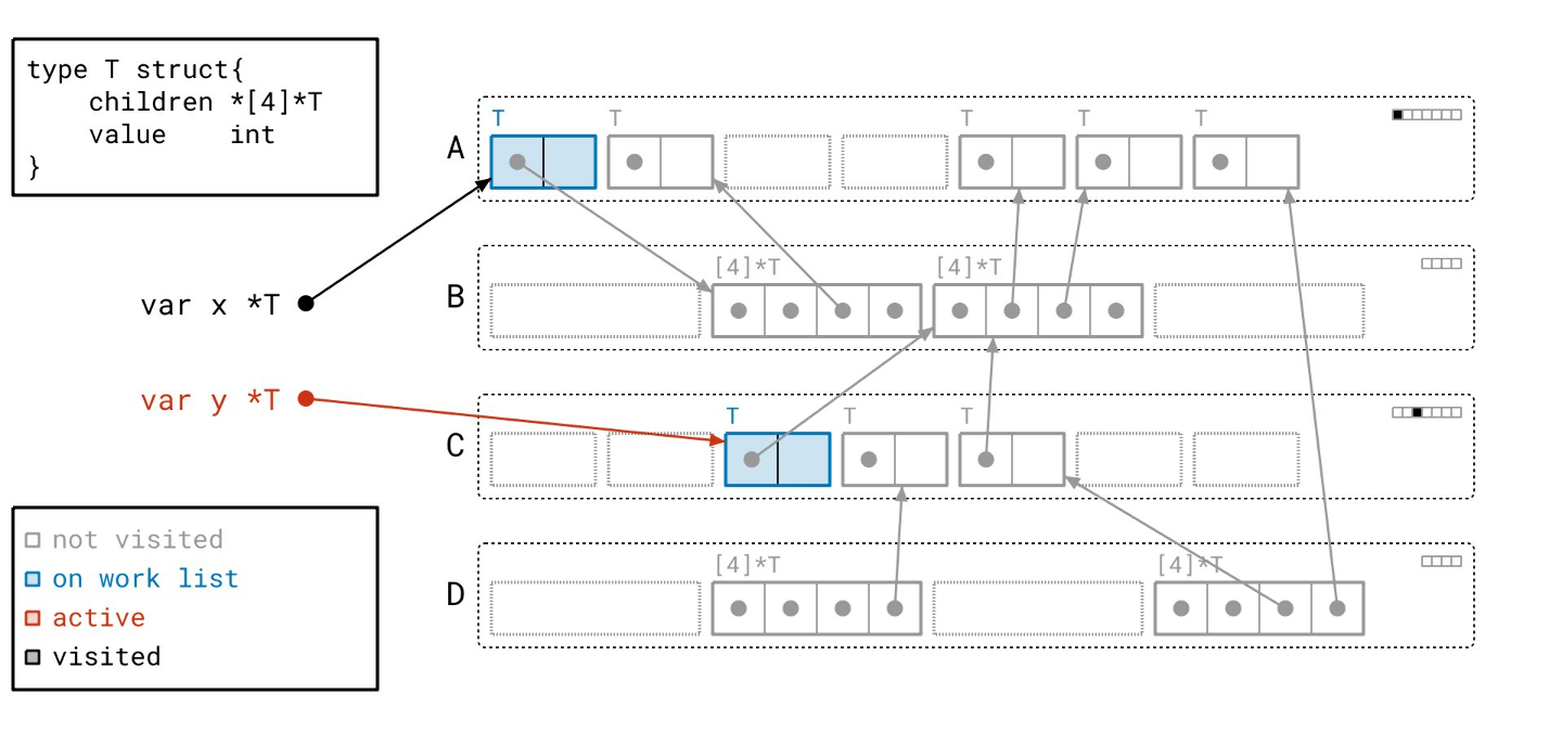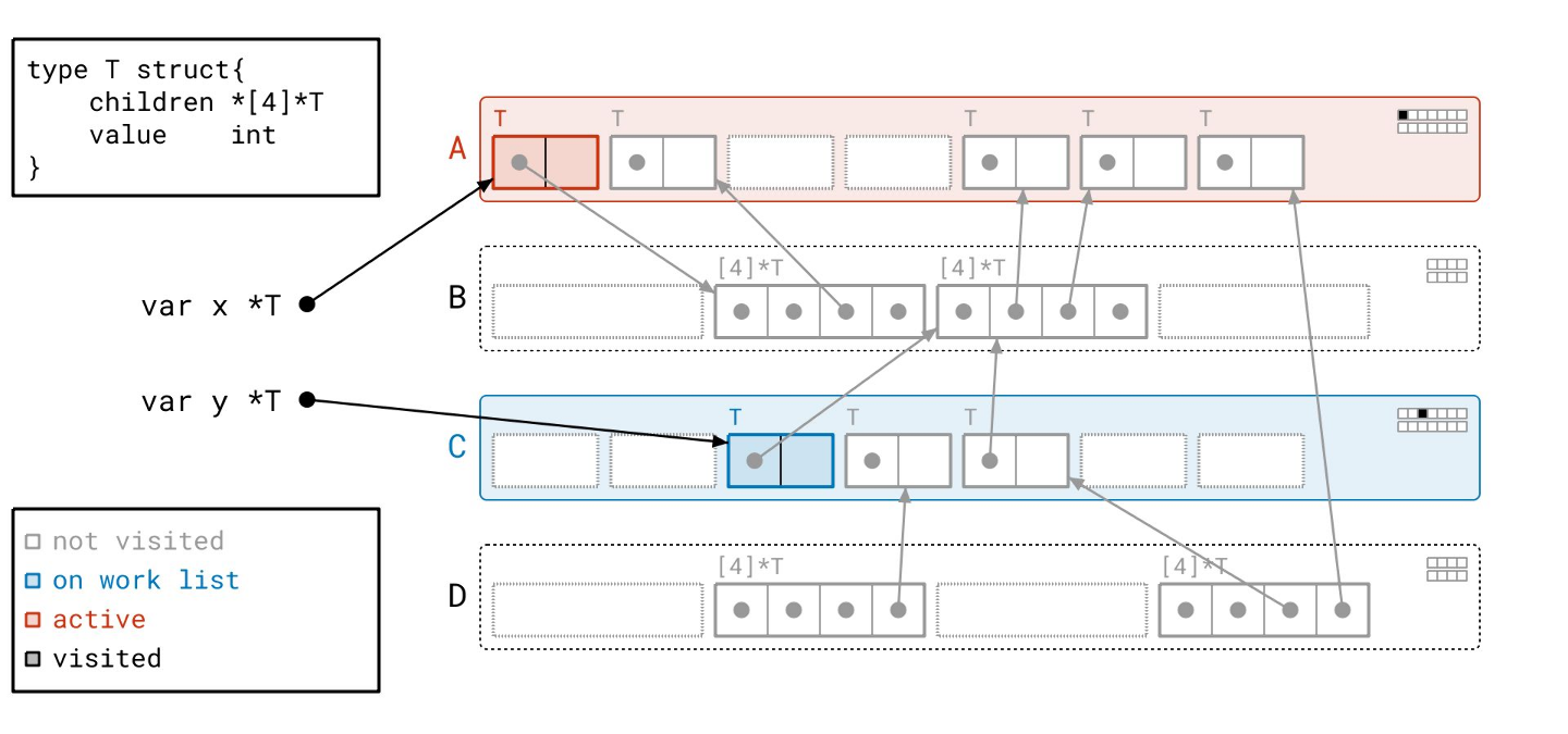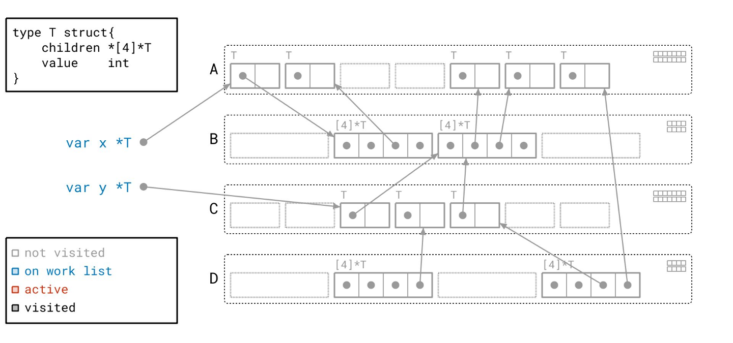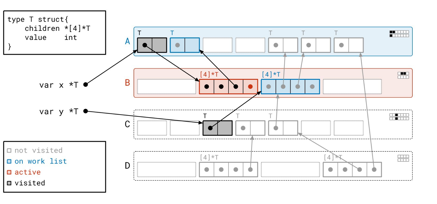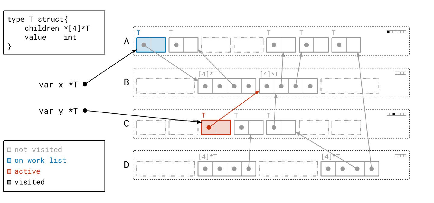For example, this algorithm is, in practice, executed concurrently with your regular Go code. Walking a graph that’s mutating underneath you brings challenges. We also parallelize this algorithm, which is a detail that’ll come up again later.