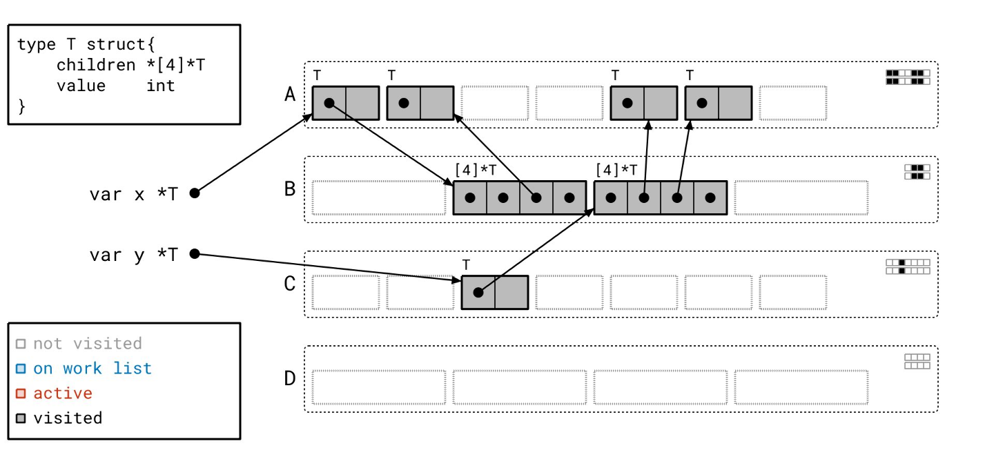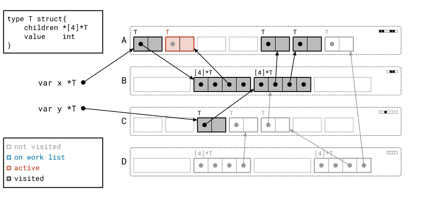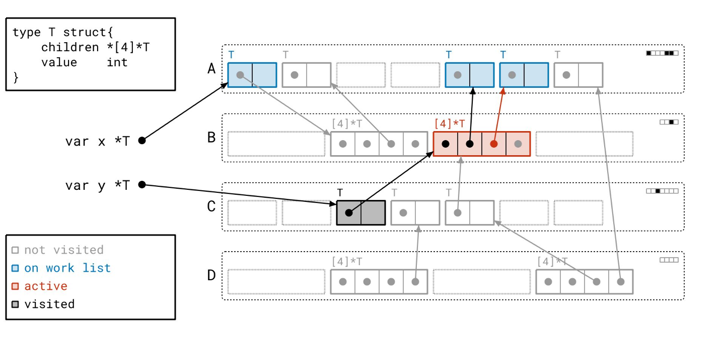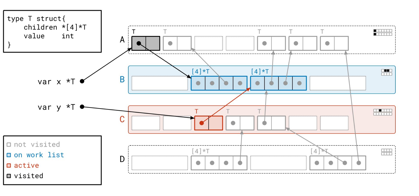 For example, this algorithm is, in practice, executed concurrently with your regular Go code. Walking a graph that’s mutating underneath you brings challenges. We also parallelize this algorithm, which is a detail that’ll come up again later.